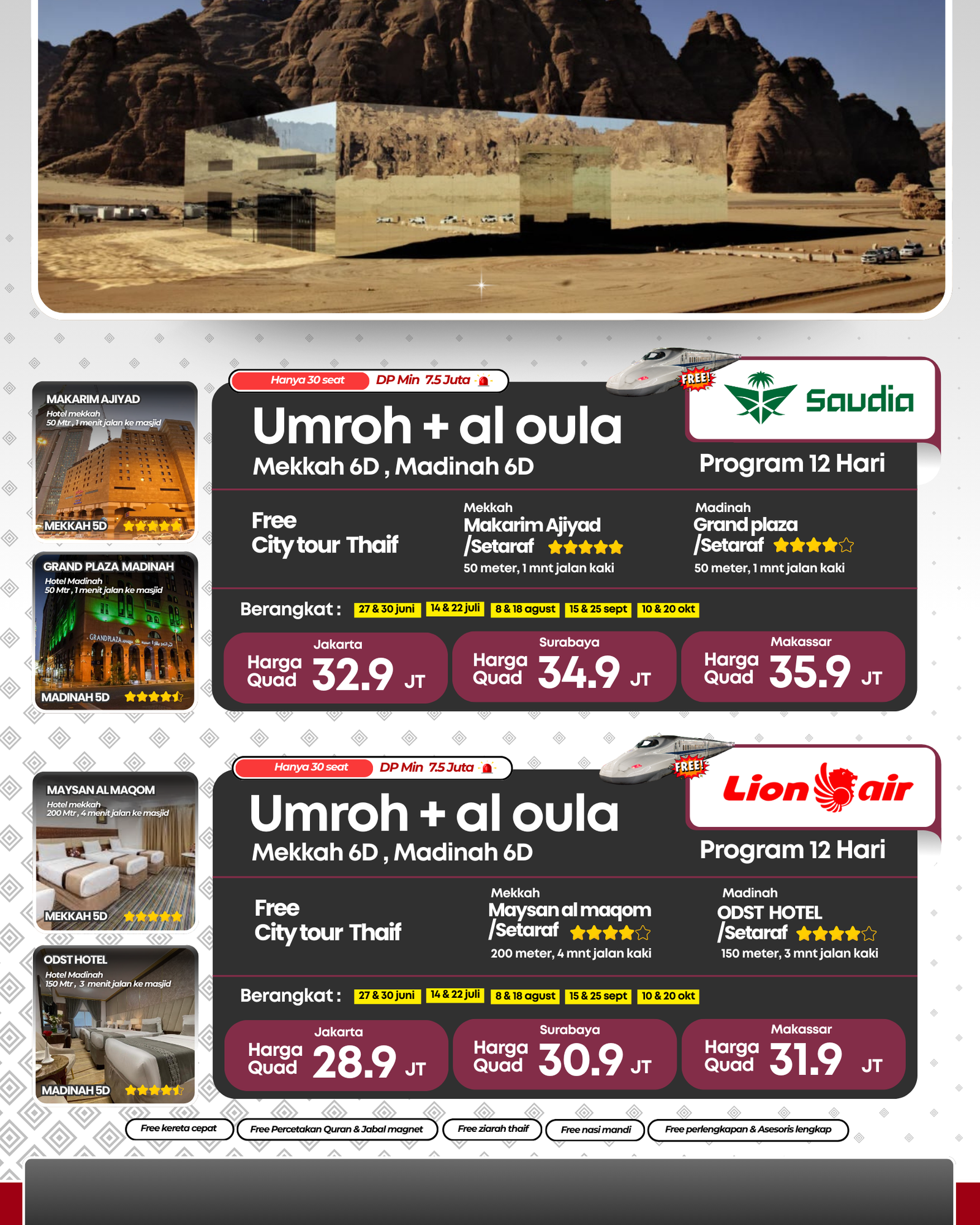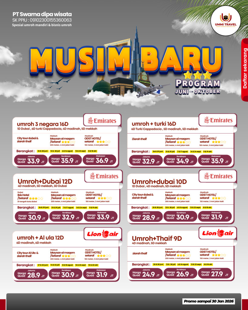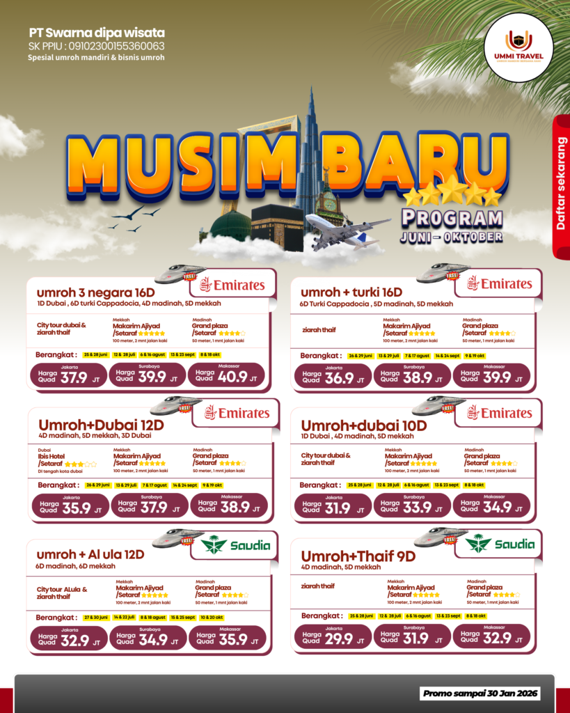 Umroh bareng Eloura Haramain dengan nyaman dengan harga terbaik, yuk daftar sekarang..